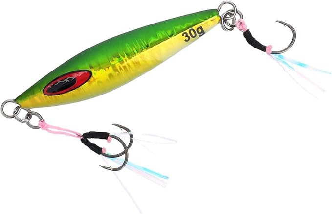 鉄の比重の軽さが鉛のジグにはない絶妙の間を水平姿勢で作り出し、ジグが失速するまでの時間が長くとれるので喰わせの間が取りやすいのが特徴。